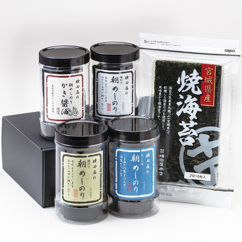 朝めしのり4種・宮城県産焼のり半切の詰め合せ【品番:0037】